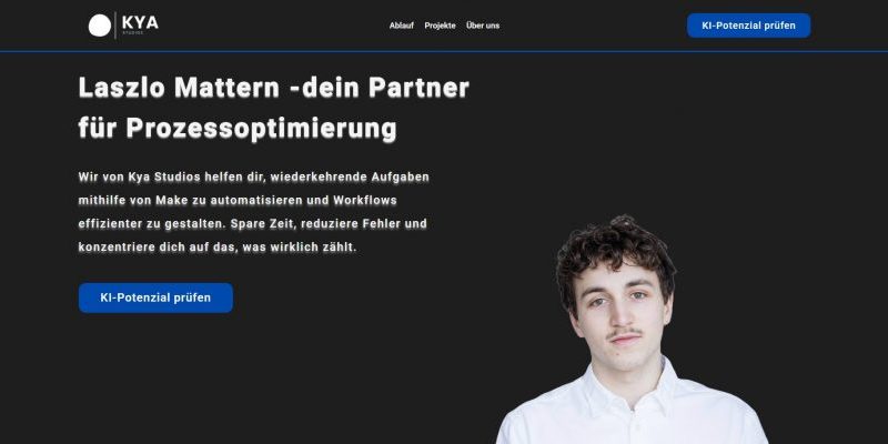 Laszlo Mattern ist selbstständig im Bereich Prozessautomatisierung mit Make.com tätig und benötigte eine professionelle Online-Präsenz, um seine Leistungen seriös und klar zu präsentieren. Meine Aufgabe war die Konzeption und Umsetzung eines Onepagers. Die Website wurde gezielt als Landingpage aufgebaut, um Vertrauen bei potenziellen Kunden zu schaffen, Abläufe verständlich darzustellen und Anfragen zu fördern. Das Ergebnis ist eine moderne, strukturierte Website, die seine Expertise widerspiegelt und ihn bei der Kundengewinnung unterstützt.