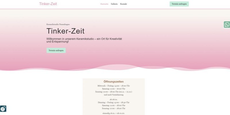 Das Keramikstudio Tinker-Zeit wünschte sich eine verspielte Website, die zu ihrem Laden passt und besonders Familien und Kinder anspricht. Ich habe die Website vollständig erstellt, dabei ein individuelles Design entwickelt, für mobile Geräte optimiert und grundlegende SEO-Maßnahmen umgesetzt. Durch regelmäßige Abstimmungen entstand so eine moderne und einladende Website, die den Charakter des Studios authentisch widerspiegelt.